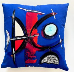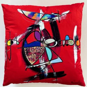 Cette housse de coussin fabriquée par une entreprise française, reproduit les œuvres de Perrotte.