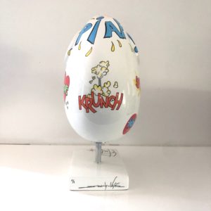 Le piaf ! C’est vraiment et définitivement la signature de Valérie Marty. Cette petite chose magnifique, sensuelle, déclinée dans des couleurs presque à l’infini, bien posée sur sa platine noire impeccable est incontournable. Il peut se poser partout, dehors, dedans, seul ou en série.