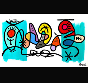 L’œuvre de Perrotte est éclatante, soulignée par la modernité du vinyle.
